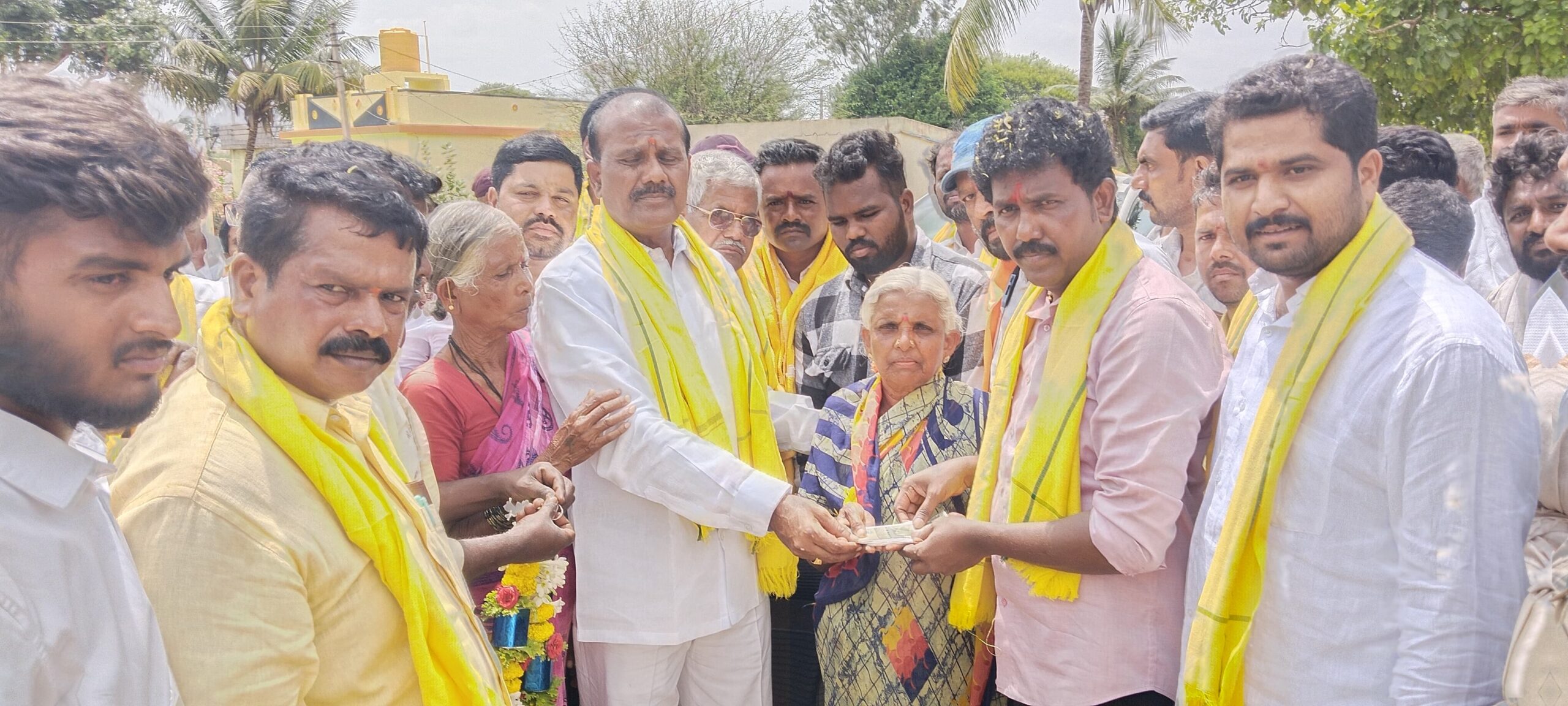 On the 31st, pensions under the NTR Bharosa scheme were personally distributed in Dasappapally and Guttaguriki villages of Rolla Mandal. The leaders went door-to-door to hand over the pensions directly to the beneficiaries.